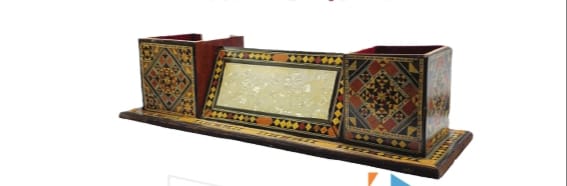 طباعة صورة شخصية أو كتابة بواسطة المكبس الحراري على قاعدة مكتب بني ذهبي
