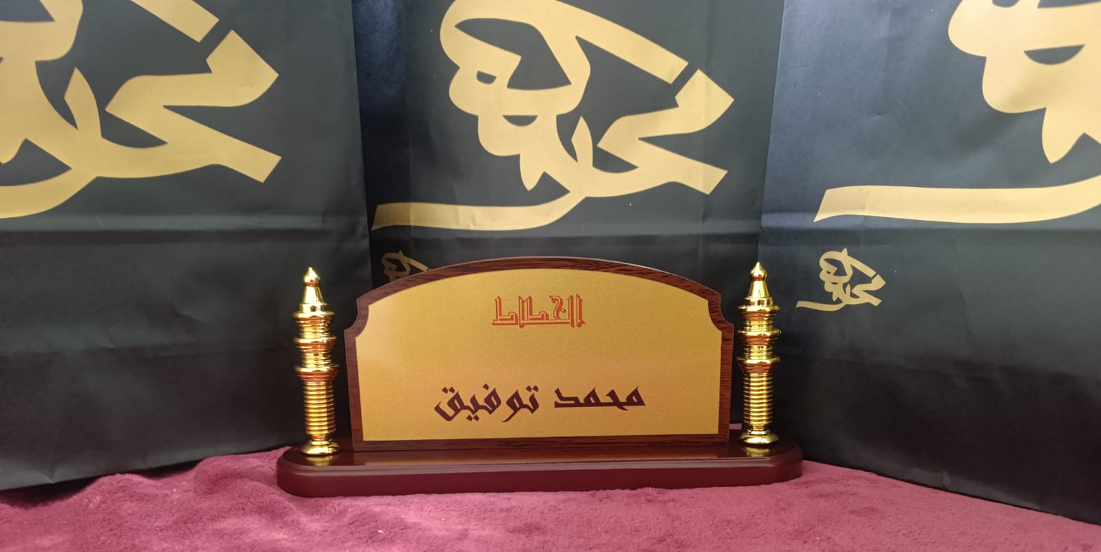 مواصفات المنتج : الطباعة على قاعدة المكتب بحجم 27.5*7 سم