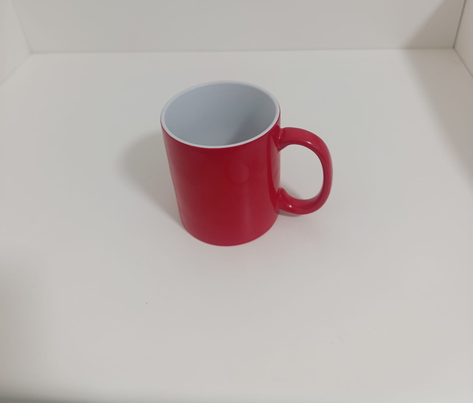 طباعة صورة شخصية أو كتابة بواسطة المكبس الحراري على مج سحري احمر و من الداخل ابيض – عند وضع مشروب ساخن بداخله يتحول أبيض