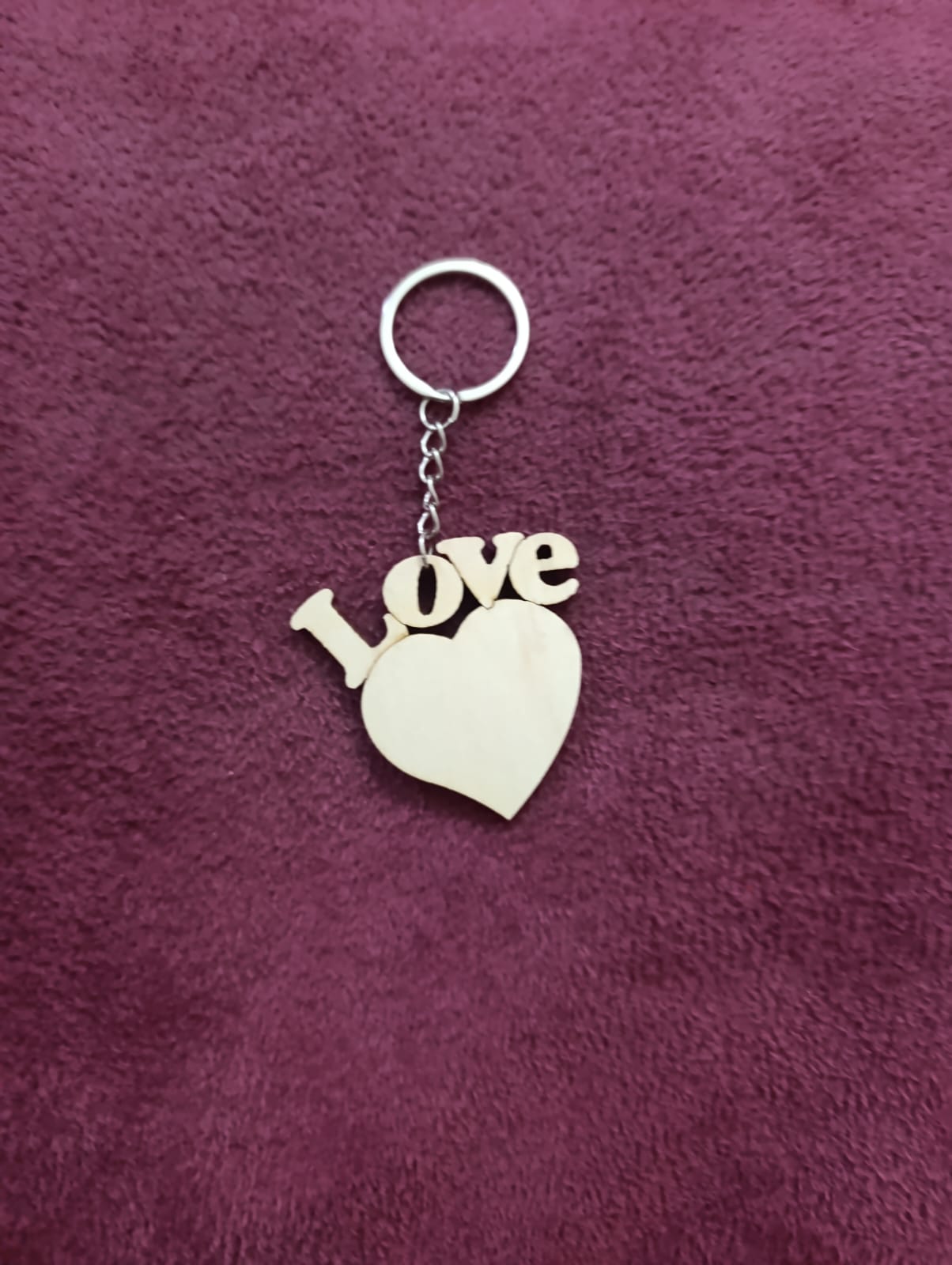 ميدالية خشبية على شكل قلب مع عبارة love فوقها